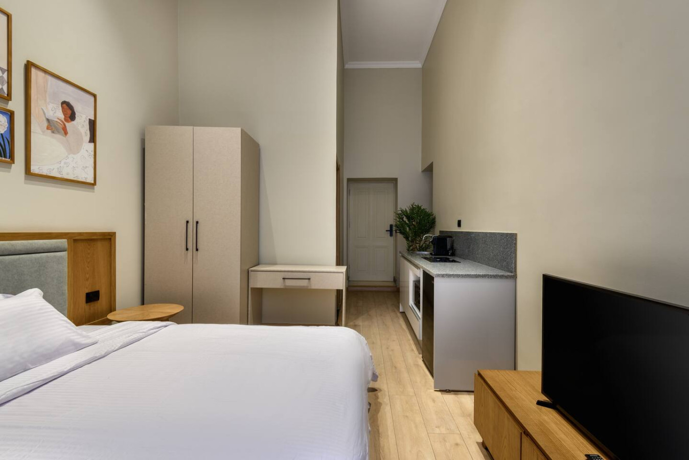 Step into history with this cozy studio at Hazel Downtown, located in a beautifully restored heritage building. Dating back to the early 20th century, the property blends historic charm with modern comfort. The studio features a comfortable bed, a well-equipped kitchenette, and a stylish bathroom, all designed to provide a serene retreat. Enjoy the ambiance of a historic setting while being in the heart of the vibrant city